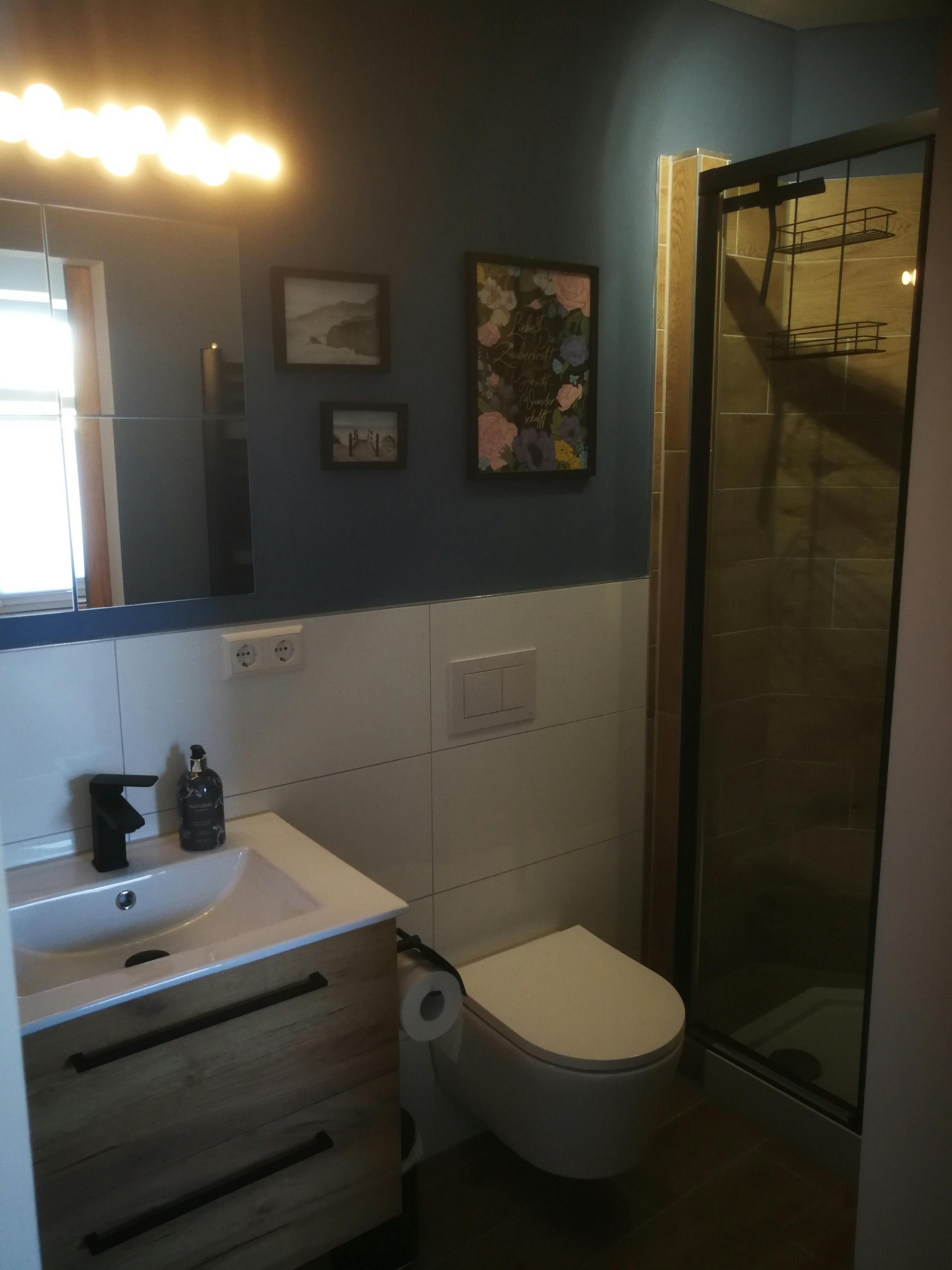 Appartement mit Schlafzimmer mit 1,80m Doppelbett, Wohnzimmer, Küche, Bad mit Dusche und WC,